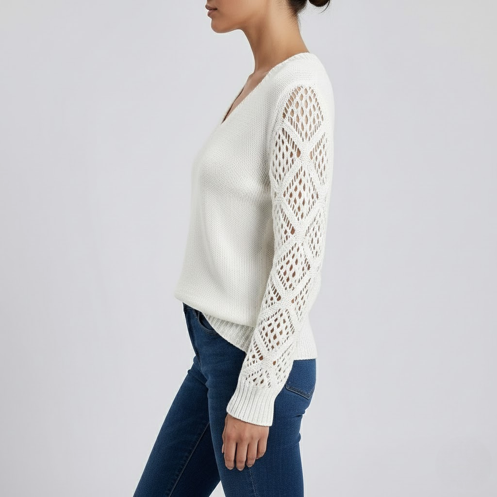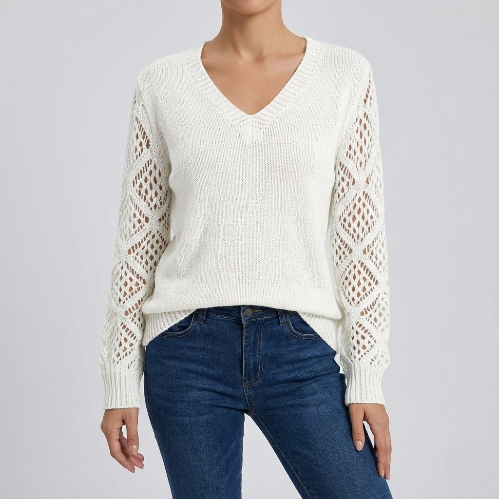 Rafinament și Feminitate în Fiecare Detaliu: Puloverul cu Mâneci Ajurate