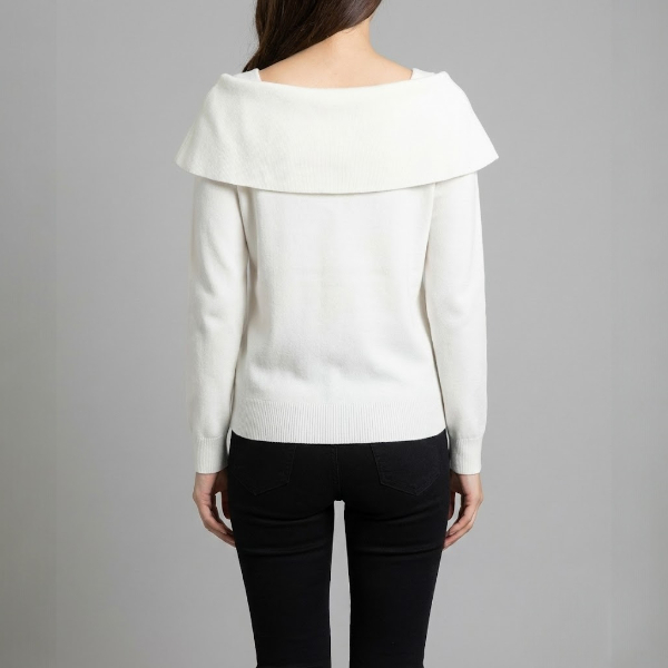 Descoperă combinația perfectă între eleganță și senzualitate cu acest pulover sofisticat. Croiala sa modernă pune în valoare linia umerilor și a gâtului printr-un decolteu amplu, decorat cu o fundă supradimensionată care atrage toate privirile. Realizat dintr-un tricot fin și confortabil, puloverul urmează linia corpului fără a fi strâmt, oferindu-ți o siluetă grațioasă și un confort desăvârșit, fie la birou, fie la o ieșire specială în oraș.