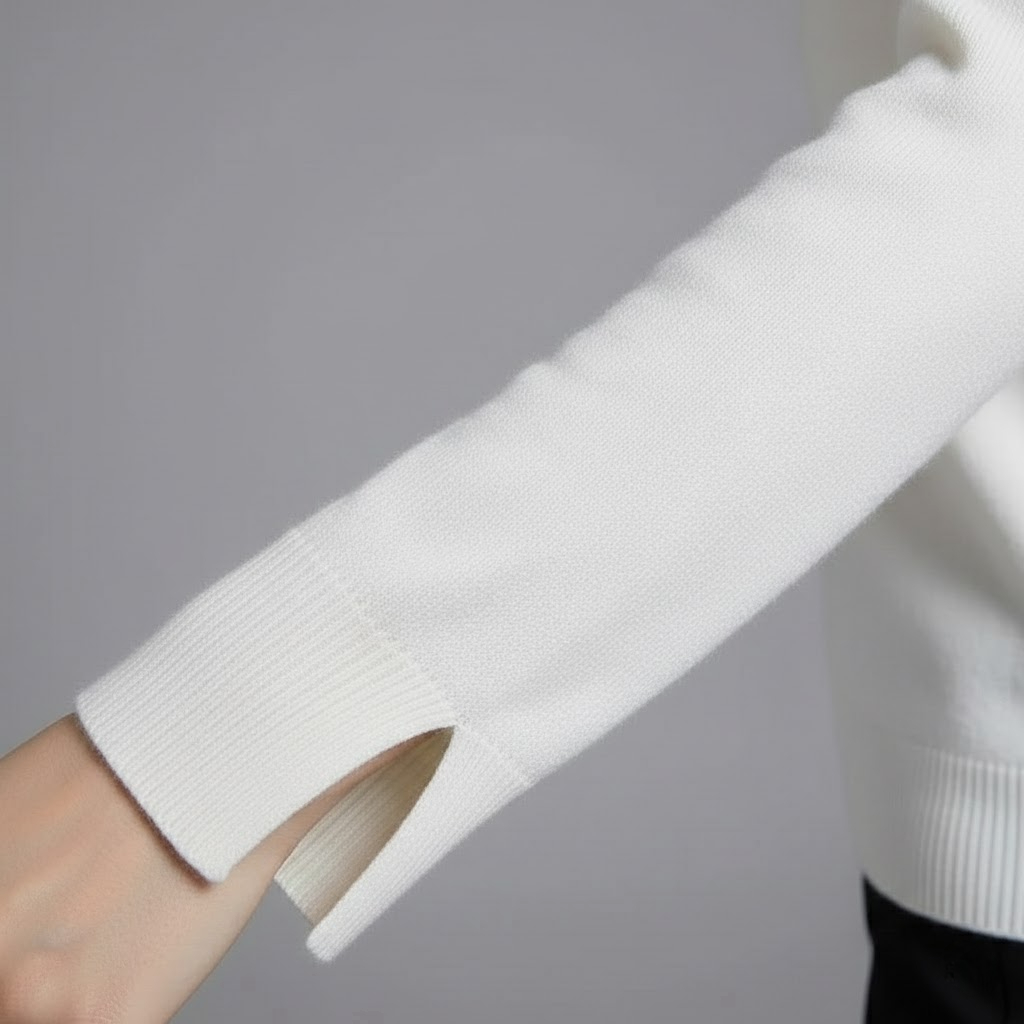 Detaliu Statement: Funda stilizată integrată în guler transformă un pulover clasic într-o piesă memorabilă, eliminând nevoia de accesorii suplimentare în zona gâtului.